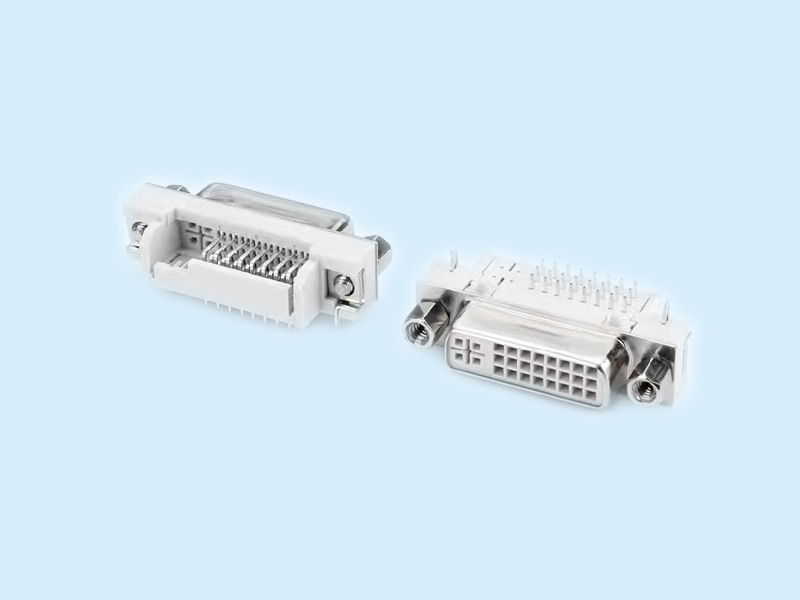 DVI24+5 female socket Horizontal DIP (empty signal pin) short post riveting Lock screw